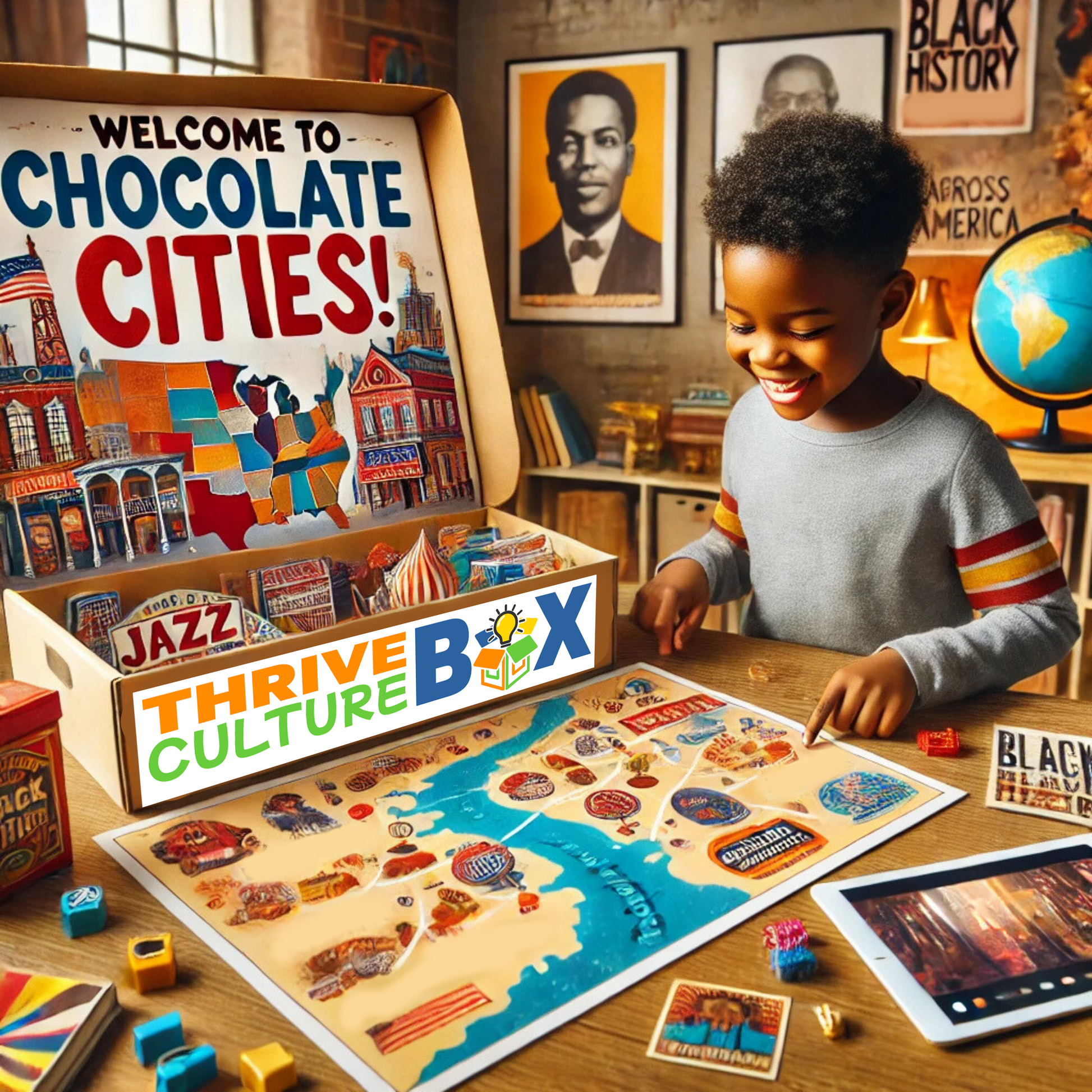 Embark on a monthly adventure through America’s “Chocolate Cities,” learning the rich history, cultural impact, and stories of Black communities that have shaped these vibrant cities. Each month, kids will watch an engaging video exploring a different city’s history, migration patterns, and cultural influence. With every video, a special learning box arrives at your door, filled with hands-on activities, maps, and unique artifacts that bring each city’s story to life. Perfect for young learners curious to discover the people, places, and legacies that define these remarkable communities!